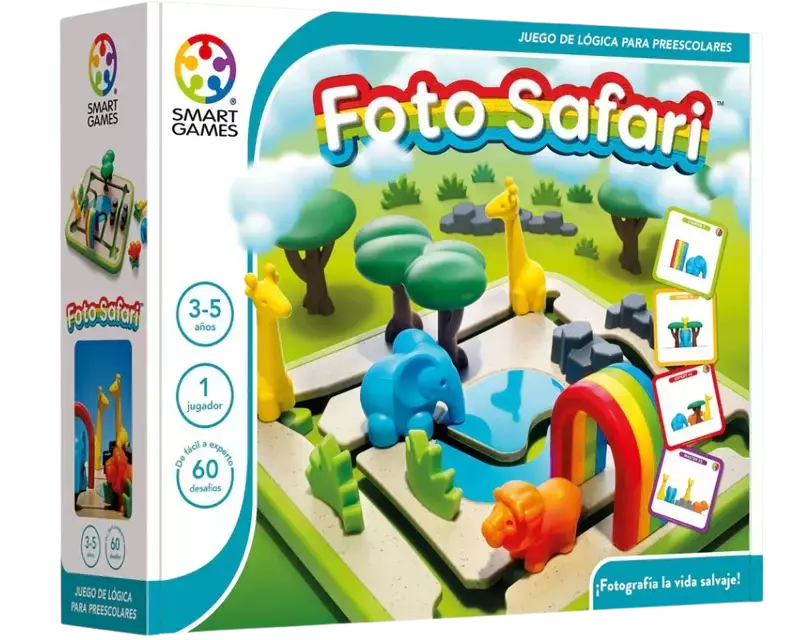 Foto Safari - Smart Games es un juego de lógica multinivel diseñado para desafiar el pensamiento estratégico y la percepción espacial. Con 60 retos, este juego pone a prueba la capacidad de planificación y resolución de problemas de los jugadores